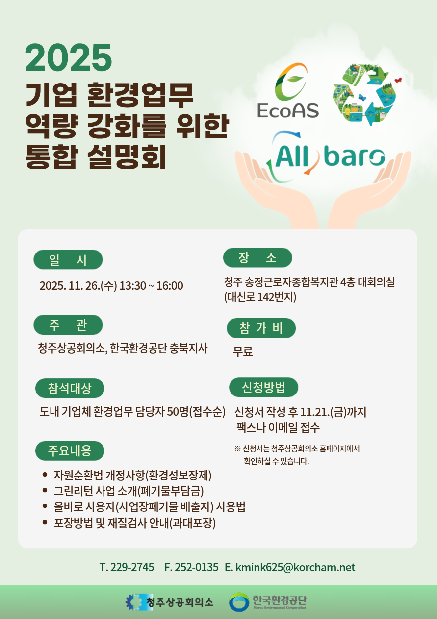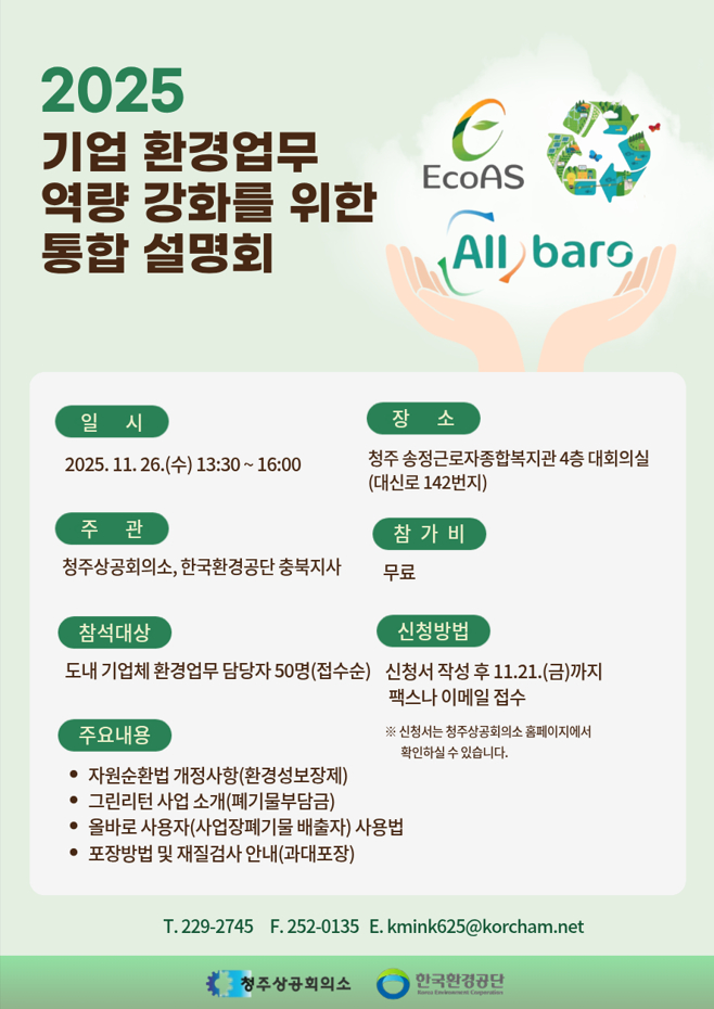 대표전화 : Tel : 043-229-2700 문의 : cheongju@korcham.net