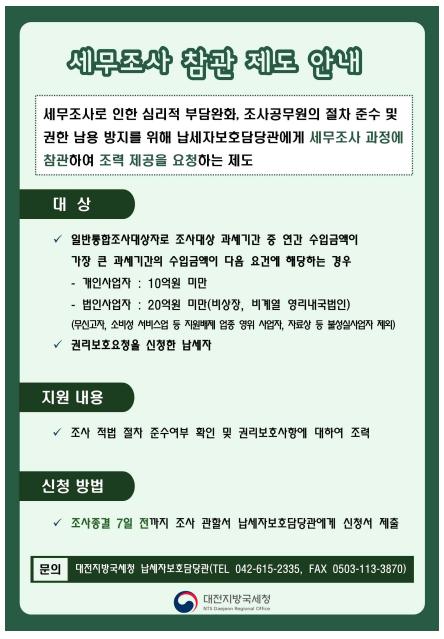 | ‒ | [대전지방국세청] 권리보호 및 참관안내문 |