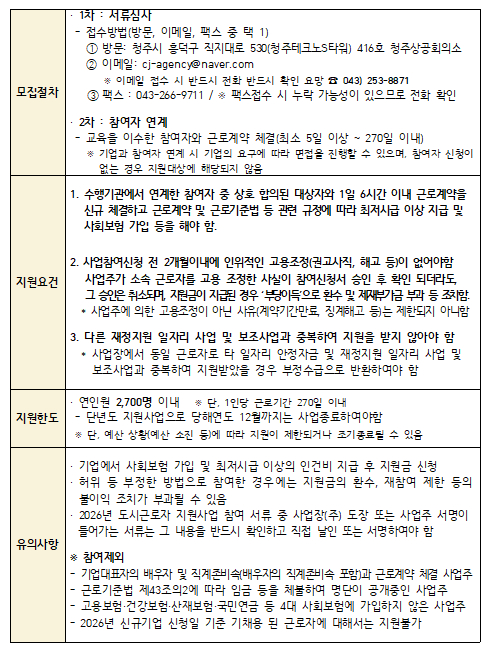 | ‒ | 2026년 충북형 도시근로자 지원사업 참여기업 모집공고 |